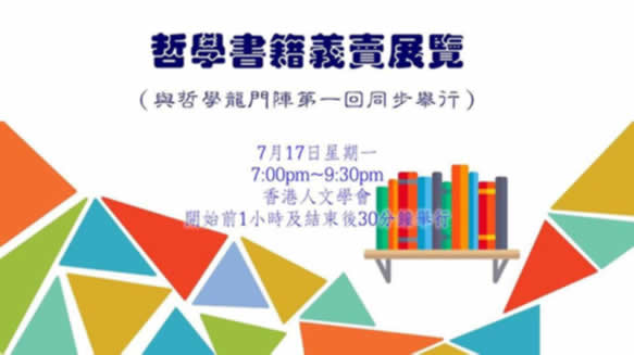 香 港 人 文 哲 學 會 是 本 地 土 生 地 長 的 文 化 學 術 及 教 育 團 體 , 成 立 二 十 多 年 以 來 , 一 向 致 力 於 促 進 本 港 的 教 育 和 文 化 學 術 活 動 , 不 遺 餘 力 ; 如 出 版 哲 學 期 刊 及 網 上 文 庫 、 成 立 文 化 學 術 網 頁 , 並 曾 舉 辦 了 多 個 哲 學 學 術 講 座 、 座 談 會 、 讀 書 組 、 研 討 會 , 以 及 低 廉 收 費 的 哲 學 課 程 等 等 。 然 而 , 本 會 是 純 粹 民 間 文 教 團 體 , 沒 有 宗 教 、 政 治 或 商 業 力 量 的 支 持 , 財 政 十 分 緊 絀 ; 因 此 , 要 長 期 維 持 下 去 , 實 有 賴 於 社 會 人 士 的 熱 心 捐 助 , 而 本 活 動 便 是 以 獲 得 社 會 大 眾 募 捐 為 目 的 。 本 會 仝 人 將 捐 出 大 量 中 西 哲 學 書 籍 作 義 賣 之 用 , 當 中 包 括 一 些 個 人 珍 藏 、 坊 間 也 難 以 購 買 的 絕 版 書 籍 ; 我 們 希 望 各 界 人 士 也 可 以 捐 出 哲 學 書 籍 以 作 支 持 。 期 望 本 活 動 能 得 到 大 家 慷 慨 解 囊 , 為 本 港 文 化 學 術 共 同 付 出 一 分 力 量 。