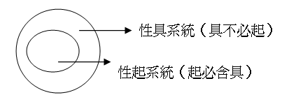 當華嚴宗面對此「性具系統」,由於其自身乃屬「性起系統」,故從系統性格之不同,華嚴宗自不必受「性具系統」從存在上所建立之法理所規限。