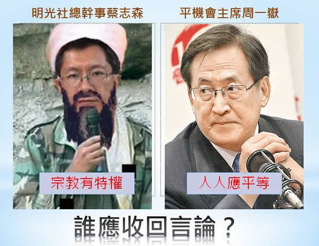 這是惡人先告狀。在現代社會,人權自由的普世價值不是優先於宗教價值嗎?其理甚明,無用狡辯。我們促請明光社收回其反動言論,並向公眾道歉!