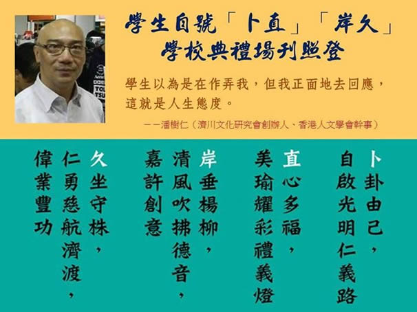 學生自號「卜直」「岸久」、學校典禮場刊照登