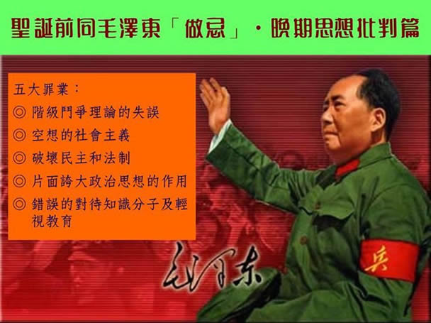 以上僅是對毛澤東晚年思想的一些主要方面的批判,但已足以見出其對中國的塗毒與禍害。因是之故,與其如中共土共大攪他的忌辰紀念,對其歌功頌德;倒不如將其思想加以批判,使中國人民全面認識其毒害,日後避免由此導致的人類大災難。