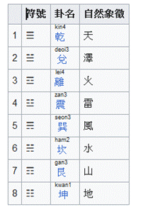 所以八卦本身,最初所代表的八個事物,關係就是上下內外,相感相通,相反相成的關係。用八卦講各事物德性,就是由事物和其他事物發生關係時來說,由所表現出的剛柔動靜姿態上來看。