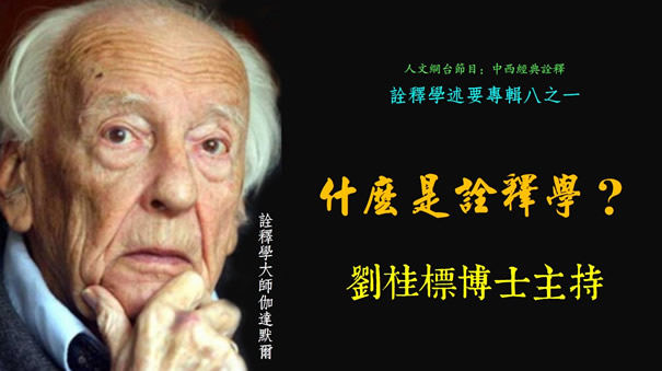 詮 釋 學 ( h e r m e n e u t i c s , 又 譯 為 「 解 釋 學 」 ) 是 當 代 歐 陸 其 中 一 個 重 要 的 哲 學 學 派 , 其 理 論 地 位 足 以 與 英 美 的 分 析 哲 學 分 庭 抗 禮 。 自 從 施 萊 爾 馬 赫 開 創 普 遍 意 義 的 詮 釋 學 後 , 後 繼 者 不 斷 , 海 德 格 、 伽 達 默 爾 、 哈 伯 馬 斯 及 利 科 等 , 都 是 現 代 西 方 哲 學 的 巨 匠 , 對 現 代 哲 學 及 人 文 思 潮 影 響 至 鉅 。 本 節 目 便 是 從 上 述 大 哲 的 詮 釋 學 觀 點 出 發 , 並 結 合 中 國 傳 統 的 經 典 詮 釋 觀 點 , 如 王 弼 註 老 、 郭 象 註 莊 、 朱 子 註 四 書 等 , 解 讀 中 西 哲 學 的 經 典 。