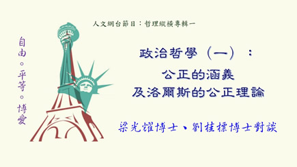 本 專 輯 由 梁 光 耀 博 士 與 劉 桂 標 博 士 以 對 談 的 方 式 , 分 析 和 討 論 當 代 政 治 哲 學 的 中 心 觀 念 , 如 公 正 、 自 由 、 平 等 、 民 主 等 等 , 並 以 古 往 今 來 著 名 政 治 哲 學 家 ─ ─ 柏 拉 圖 、 亞 理 士 多 德 、 康 德 、 黑 格 爾 、 洛 克 、 彌 爾 、 洛 爾 斯 、 諾 錫 克 、 柏 林 等 等 的 相 關 觀 點 為 焦 點 , 令 聽 眾 對 當 代 政 治 哲 學 有 全 面 而 具 體 的 了 解 。