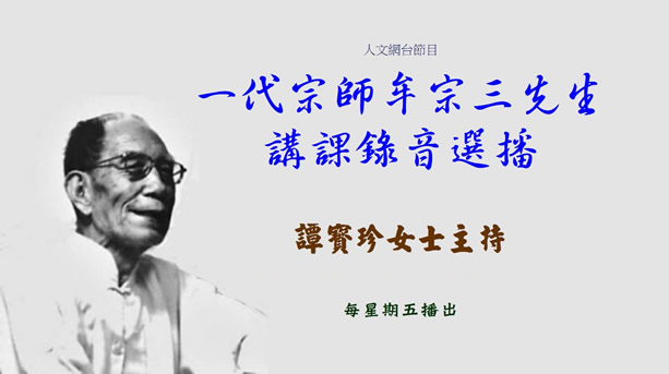 新 儒 家 牟 宗 三 先 生 ( 1 9 0 9 年 6 月 1 2 日 - 1 9 9 5 年 4 月 1 2 日 ) , 字 離 中 , 生 於 山 東 省 棲 霞 縣 , 祖 籍 湖 北 省 公 安 縣 。 1 9 3 3 年 畢 業 於 北 京 哲 學 系 。 1 9 4 9 年 往 台 灣 。 1 9 6 0 年 往 香 港 , 先 後 在 香 港 大 學 、 香 港 中 文 大 學 新 亞 研 究 所 任 哲 學 敎 授 及 導 師 , 退 休 後 繼 續 在 位 於 農 圃 道 的 新 亞 研 究 所 誠 明 堂 講 課 , 在 那 裡 留 下 不 少 講 課 錄 音 。 牟 先 生 雖 已 離 世 多 年 , 但 他 的 音 容 猶 在 。 可 惜 , 他 帶 郷 音 的 普 通 話 不 易 聽 得 懂 , 為 此 本 節 目 加 粵 語 講 解 , 大 家 習 慣 後 可 自 已 去 聽 更 詳 細 的 講 課 錄 音 , 感 受 一 代 哲 人 在 課 堂 上 的 神 韻 。